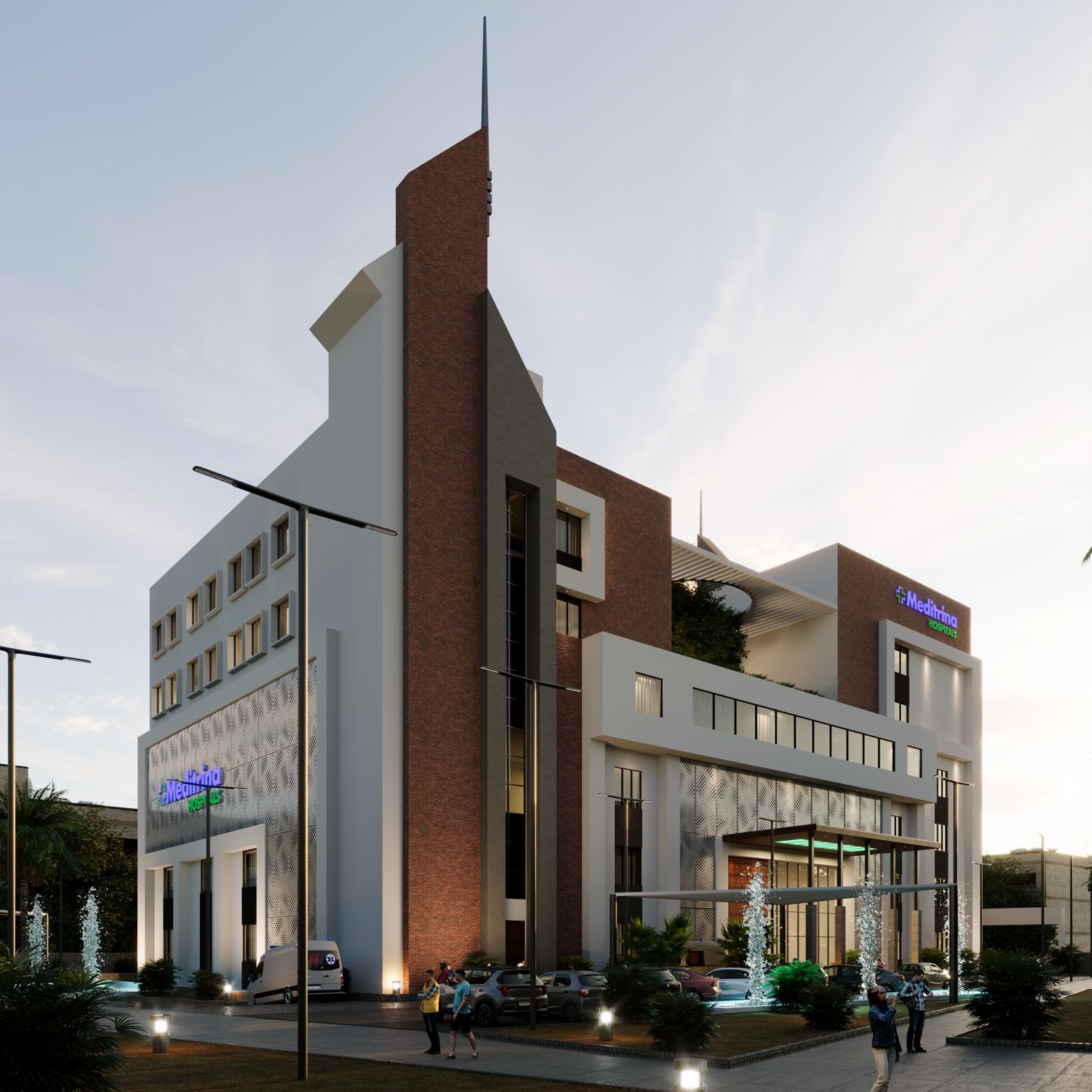 Meditrina Hospital in Jamshedpur is designed to provide a state-of-the-art healthcare environment that prioritizes patient wellbeing, staff efficiency, and long-term operational excellence. The architecture emphasizes clear circulation paths, functional zoning, and the integration of modern medical technologies.
